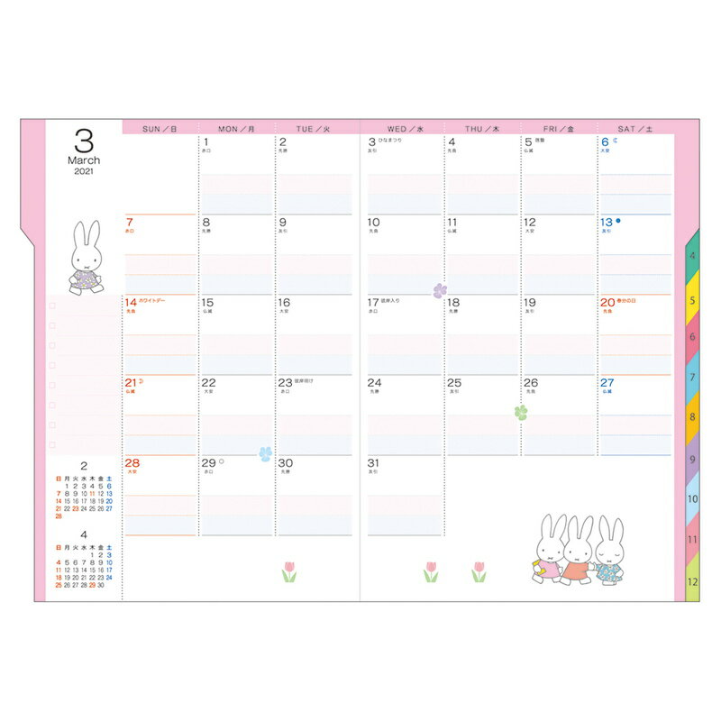 2021年 手帳 クツワ ミッフィー家族手帳 B6薄型 ひょっこり MF615D