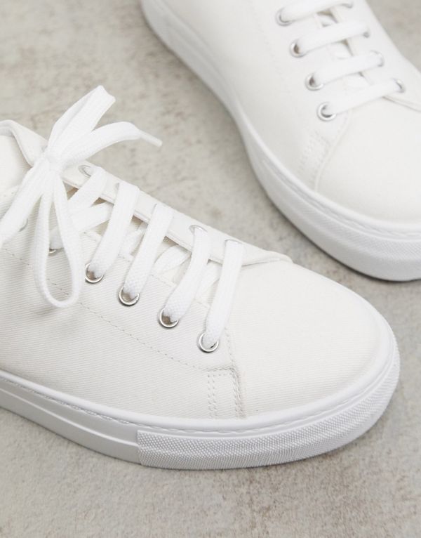 エイソス ASOS asos ASOSDESIGNデイタイム分厚いフラットフォームがトレーナーを白でレースアップ 靴 レディース 女性 インポートブランド 小さいサイズから大きいサイズまで