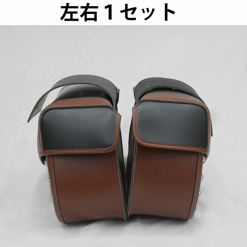 【期間限定●エントリーで全品P7倍! 4/23 20:00〜4/28 01:59】バイクサイドバッグ 左右2個セット レザーバッグ サドルバッグ リアサイド ツールバック パニアバッグ 汎用 ハーレー アメリカン 防水 収納 おしゃれ 茶 シンプル ブラウン HG-01BR