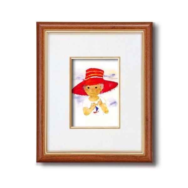 いわさきちひろ 絵画 版画 全30作 赤い帽子(あかいぼうし)縦壁掛け用 スタンド付き 額入りの絵童画 絵本作家 額付き アートパネル 化粧箱入絵画